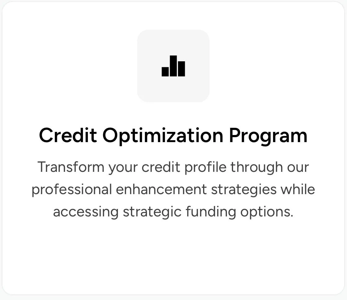 Unlock strategic credit and business funding solutions tailored to fuel your company’s success. We specialize in credit enhancement and debt consolidation pathways designed to maximize your business potential. With over $8 million in strategic funding delivered, our proven approach empowers businesses to scale and thrive.